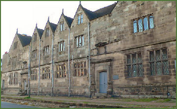Church Street boasts many fine historic buildings, including the parish church of St Oswald's, Queen Elizabeth's Grammar School, (pictured below right) was founded in 1585 by Sir Thomas Cockayne, whose family`s coat of arms formed the school badge. Owfield's Almshouses were built around 1640 with an upper storey added in 1840, Peggies Almshouses were constructed from local sandstone in 1669. The Clergy Widows Almshouse, a Georgian, 3 storeyed building, around the 3 sides of a courtyard, was built in 1733 for `the entertaining of widows of four clergymen of the church of England` and The Mansion, which was the home of the Rev John Taylor, friend of the lexicographer, Samuel Johnson, from 1740 to 1787.